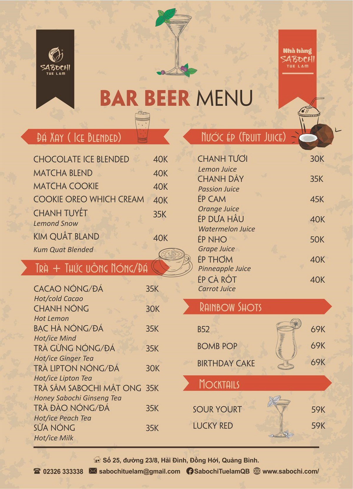 Nhà hàng Sabochi Tuệ Lâm - số 25, đường 23/8 - TP. Đồng Hới - Quảng Bình